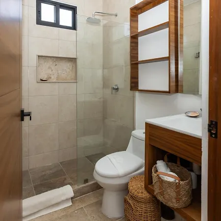 La cocina completa está convenientemente equipada con un horno de microondas, una cafetera/tetera y una nevera. Los huéspedes tienen la opción de comer en el restaurante La Chancla, que está a unos 200 metros. La estación de autobuses Panteon de los mormones está a unos cuantos pasos de la villa Apartamento Con Estilo Boho Chic, lo que permite a los huéspedes descubrir fácilmente Playa del Carmen.